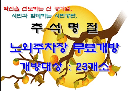 ¼º³²½Ã½Ã¼³°ü¸®°ø´Ü(ÀÌ»çÀå ÀÌ»ó¶ô)Àº ¹ÎÁ· °íÀ¯ÀÇ ¸íÀýÀÎ ÇѰ¡À§¸¦ ¸Â¾Æ ÁÖÂ÷³ ÇØ¼Ò¿Í ½Ã¹ÎµéÀÇ ÆíÀÇÁ¦°øÀ» À§ÇØ ¿À´Â 29ÀϺÎÅÍ 10¿ù1ÀϱîÁö 3Àϰ£ ÁÖÂ÷Àå 23°³¼Ò¸¦ ¹«·á °³¹æÇÑ´Ù.