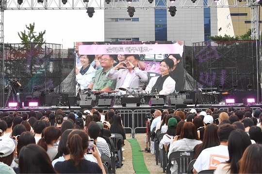 ½Å»óÁø ¼º³²½ÃÀåÀÌ 12ÀÏ ¿ÀÈÄ 7½Ã À»Áö´ëÇб³ ¼º³²Ä·ÆÛ½º¿¡¼ ¿¸° ¡®2023 ÇÇÅ©´ÐÄܼƮ¡¯¿¡ Âü°¡ÇØ ÄܼƮÀåÀ» °¡µæ ¸Þ¿î ½Ã¹Î 4õ¿© ¸í°ú ÇÑ ¿©¸§¹ãÀÇ ¹«´õÀ§¸¦ ½ÄÇû´Ù.