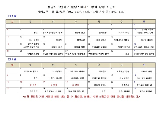¼º³²½Ã´Â ¿À´Â 2¿ù 28ÀϱîÁö 1ÀÎ °¡±¸ Èú¸µ ½ºÆäÀ̽º Ä¿¹Â´ÏƼ Ȧ(Áß¿ø±¸ µÐÃÌ´ë·Î 100 4Ãþ)¿¡¼ ¡®Ãß¾ïÀÇ ÇÒ¸®¿ìµå ¿µÈ¡¯¸¦ ÃÑ 120ȸ ¹«·á »ó¿µÇÑ´Ù.