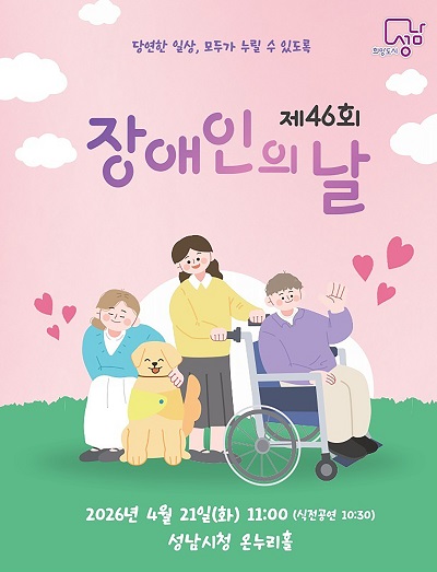 ¼º³²½Ã(½ÃÀå ½Å»óÁø)´Â ¡®Á¦46ȸ Àå¾ÖÀÎÀÇ ³¯(4.20)¡¯À» ¸Â¾Æ ¿À´Â 4¿ù 21ÀÏ ¿ÀÀü 11½Ã ½Ãû 1Ãþ ¿Â´©¸®¿¡¼ ±â³ä½ÄÀ» ¿¬´Ù.